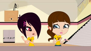 Back at school, Blythe follows the twins, trying to get them to join her and Youngmee. They ask what they would get out of it and initially refuse. Blythe forces herself to admit they may actually be really smart and she explains that they heard them speaking weirdly to each other. Brittany reveals they do this to keep their conversations private but Blythe claims it still solved the problems and they really need help. They then decide to join but only if Blythe follows their two conditions. She has to stop calling them geniuses, and they have to get them out of detention.