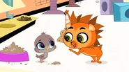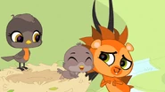 When Blythe was watching a fashion show, the Biskits pushed her, making her bump on a tree, which dropped a nest on her head. Blythe kept the nest on her head as she went back to Littlest Pet Shop, where she discovered it had an egg inside. Concerned about the egg, Blythe left to search its mother, leaving it under the pets' care.