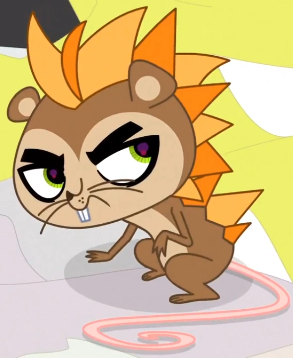 A prickly rat also made a brief appearance in The Expo Factor - Part 2, when Blythe was looking in a trash can in front of Littlest Pet Shop for something she could use as a spare hitch for her scooter. She got a lollipop, which the rat got back from her before telling her to go away.