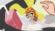 While looking for Russell, Blythe spotted movement in a trash can and checked, only to find a rat. She apologized and covered him back. Russell then tried to hide behind the trash can, but the rat told him to leave, to which Russell commented about him really being rather prickly.