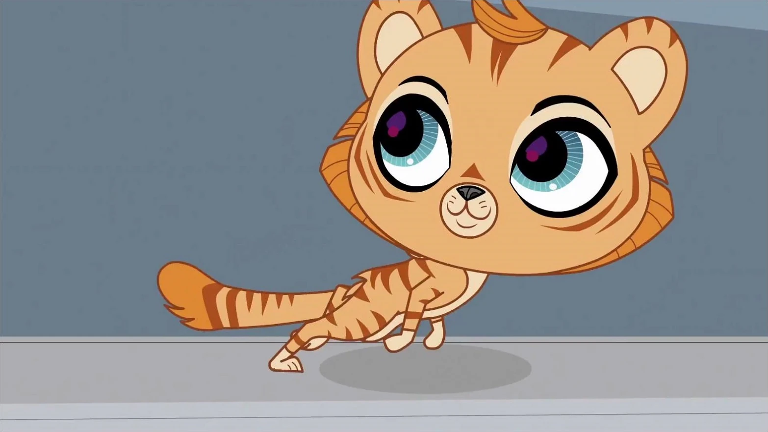During his first appearance in Gailbreak!, he tries to escape his cell in Largest Ever Pet Shop, but is caught almost as soon as he steps out of it. He spends the rest of the episode moping and telling the Littlest Pet Shop pets that no one has ever broken out and never will. His theory ends up disproven when Sunil, in a mental suggestion-induced rage, trumps the security of Largest Ever Pet Shop and sets all the animals free. In great joy, Tiger, all of the other pets trapped at LEPS and the LPS pets escape. Unfortunately, Tiger is nabbed by Fisher Biskit, who reprimands his daughters for failing to keep a close eye on the shop and its security measures. Tiger is last seen moping that he "almost made it".
